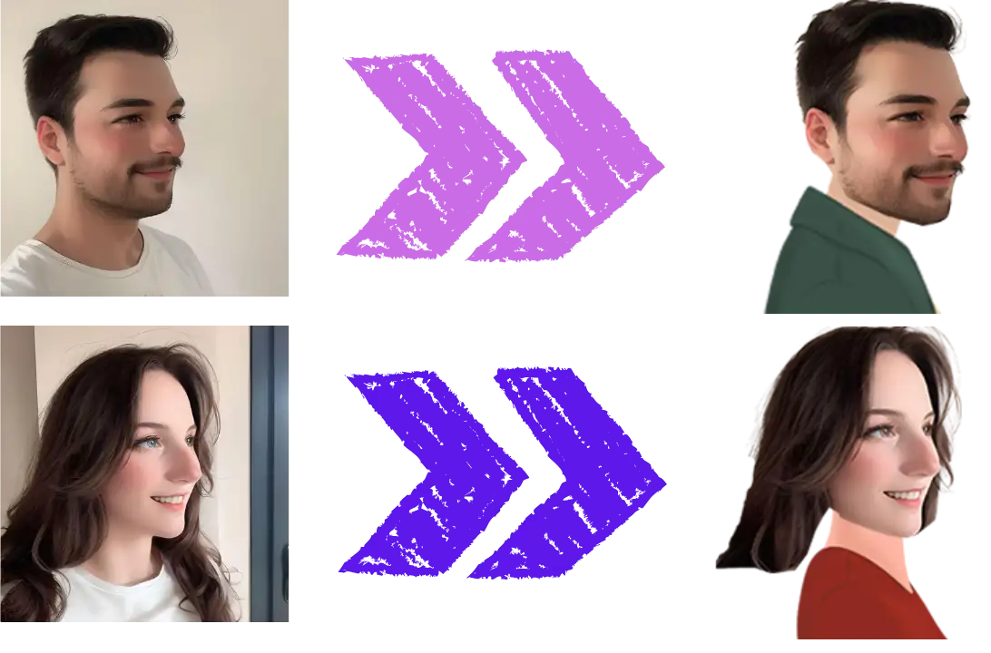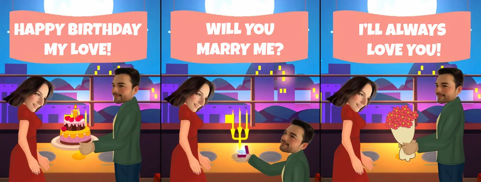 By uploading your headshots in the customization form, both you and your partner will become game characters! You can upload up to 3 photos per character. Our team will select the most suitable photo and create the character based on that.